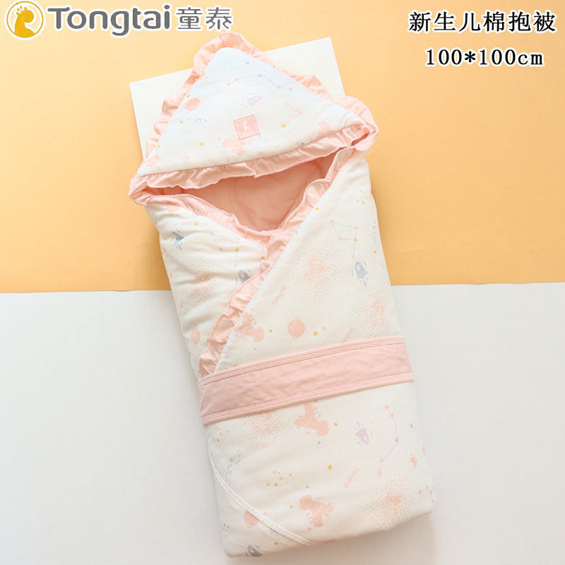 Tongtai newborn baby cotton hug quilt Autumn and winter padded quilt 1 meter*1 meter plus thickened square quilt swaddling quilt