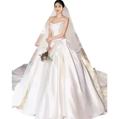 Satin bandeau light forest wedding dress 2021 new bride Hepburn travel simple dress female small skirt thin