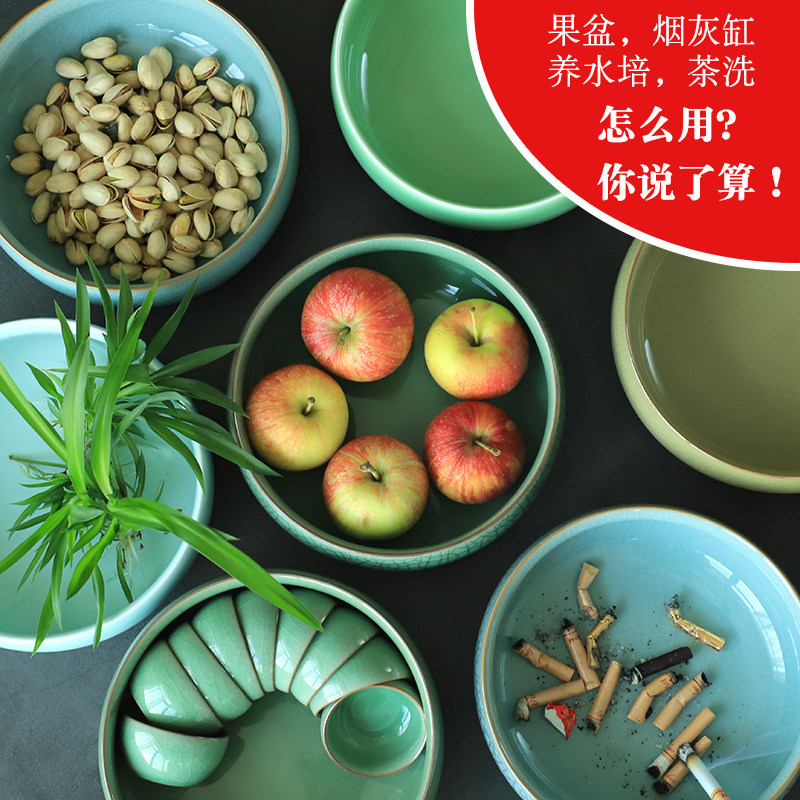 Large Number Tea Cup Wash Home Tea Bowl Pen Wash Cigarette Ash Tray Fruit Shell Cylinder Dragon Springs Green Porcelain Korn Tea With Ceramic Wash Water Spittoon