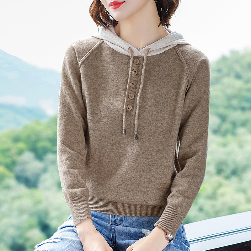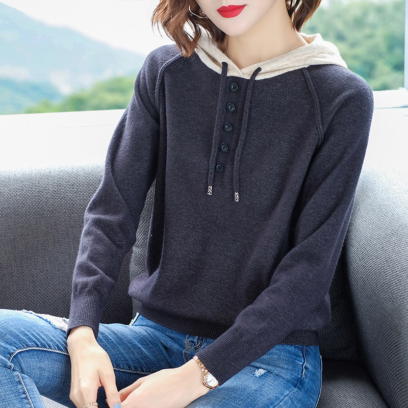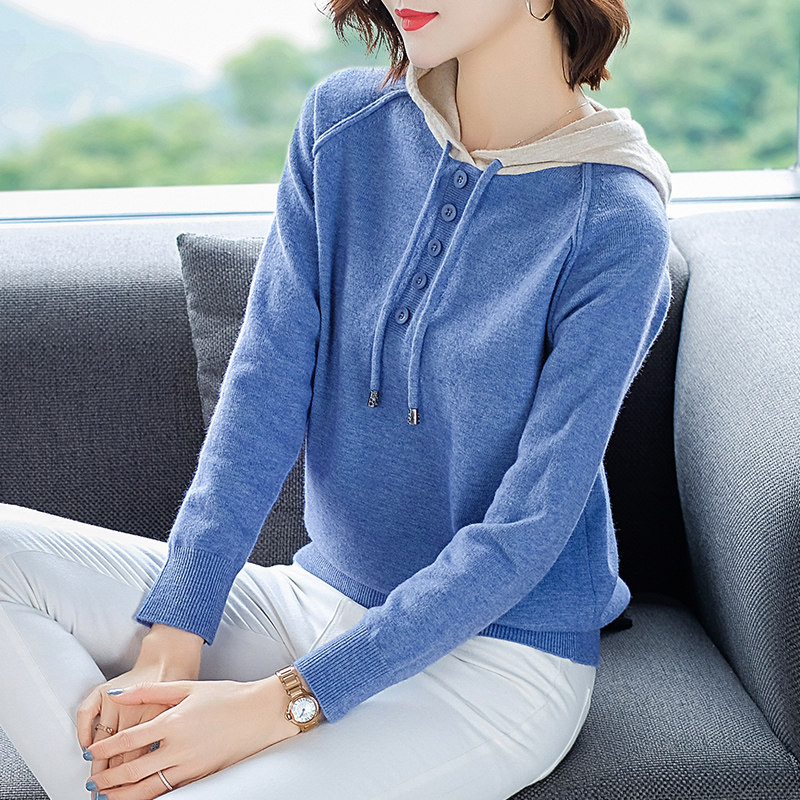 Spring 2021 new women hooded sweatshirt hooded sweater fashion wild pullover long sleeve knitted base shirt tide