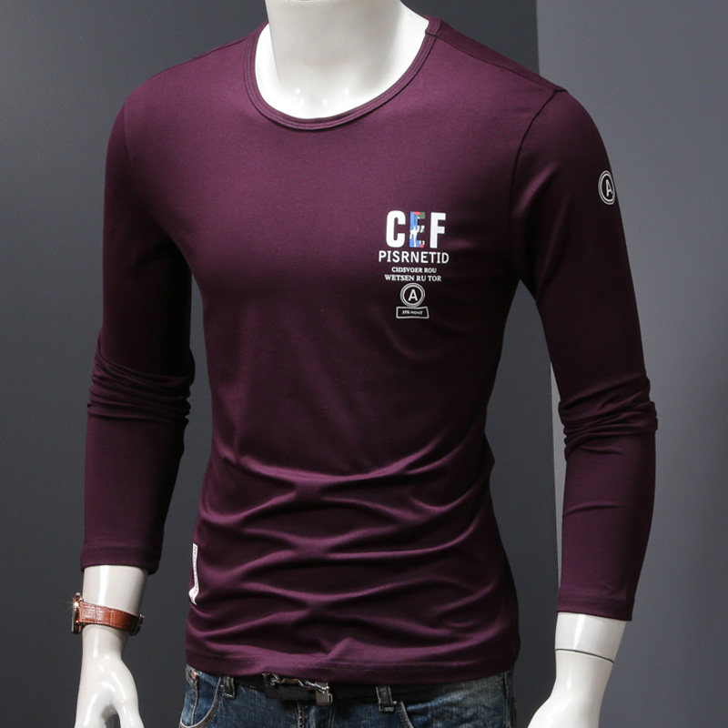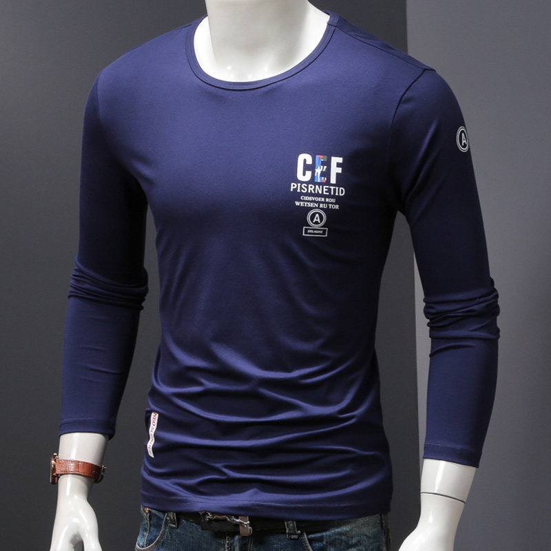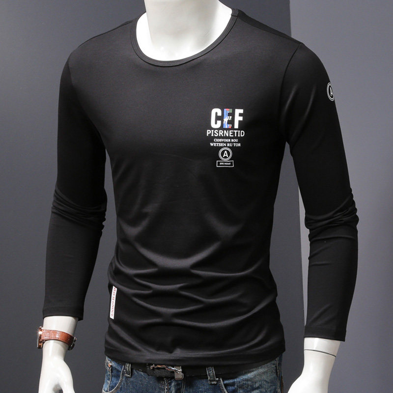 Spring and autumn thin section long-sleeved T-shirt bottoming shirt men's round neck printing tide brand spring and autumn clothes trend t-shirt small shirt