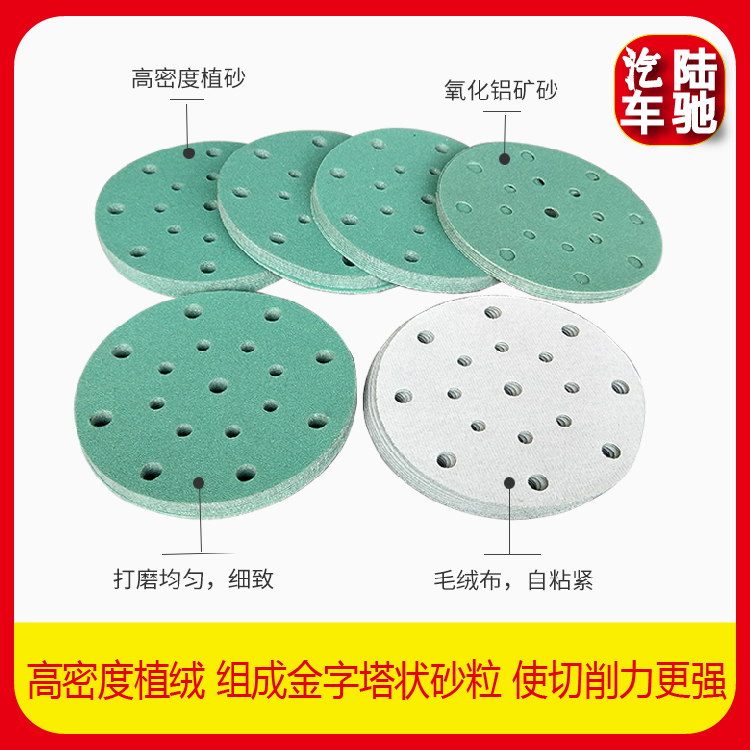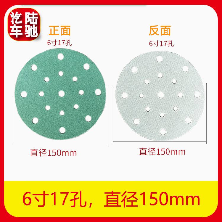 Lu Chi imported dry frosted paper 6 inch 17 holes dry and wet dual-use flocking self-adhesive green sand leather car grinding sandpaper