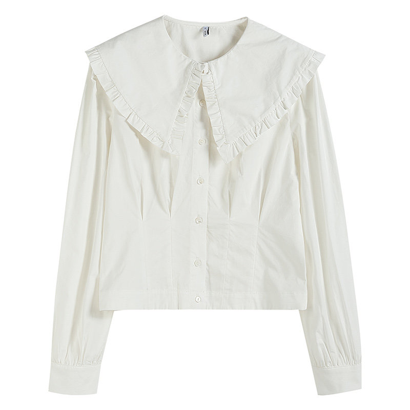 Via Vela nice white lotus leaf shirt lady designs cotton short long - sleeved retro shirt