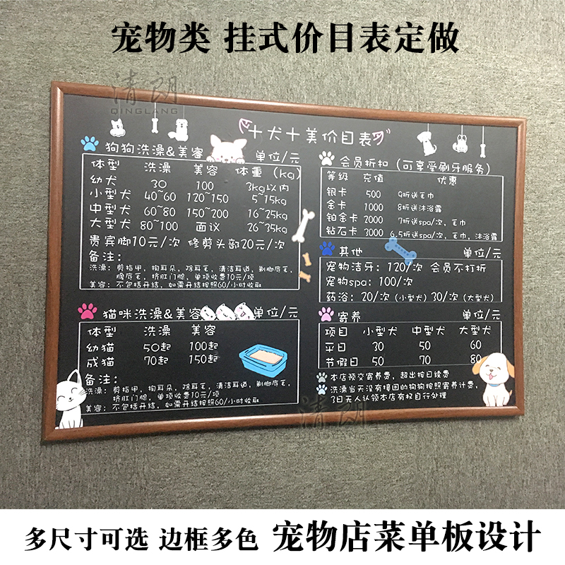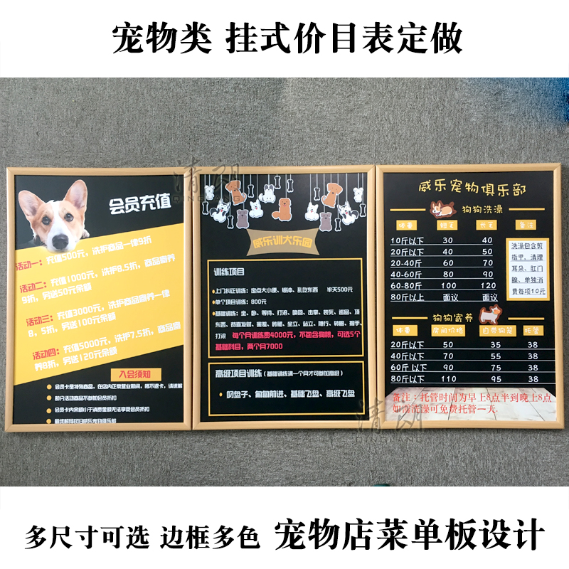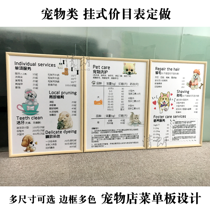 Clear custom pet shop hanging price list Custom design and production of pet washing beauty price display card Dog bathing supplies price list wall-mounted pet poster billboard custom design and production of pet washing beauty price display card Dog bathing supplies price list Wall-mounted pet poster billboard custom design and production of pet washing beauty price display card Dog bathing supplies price list