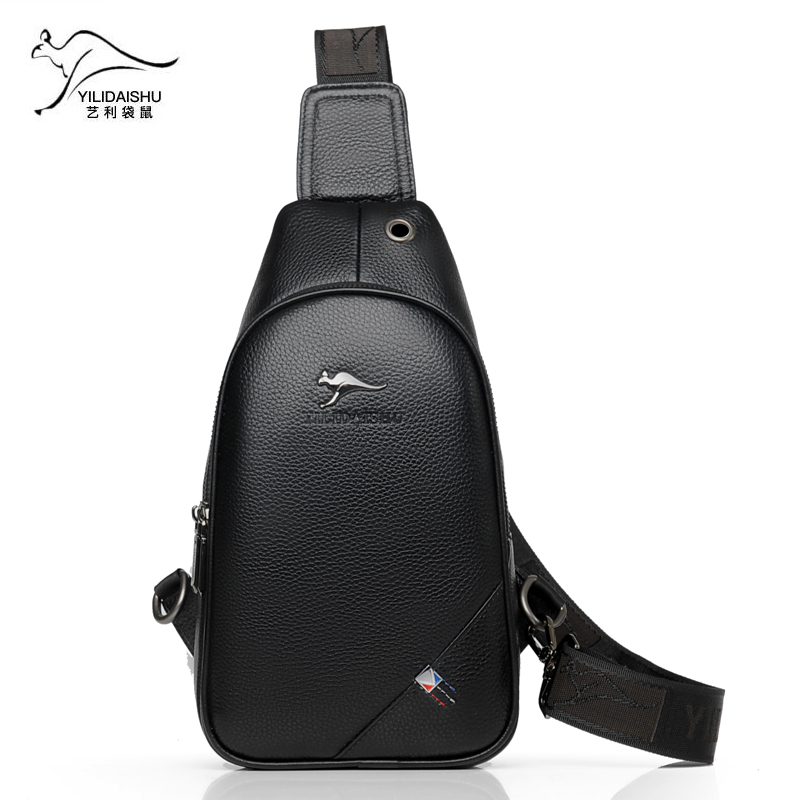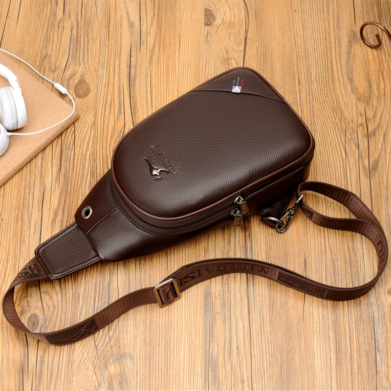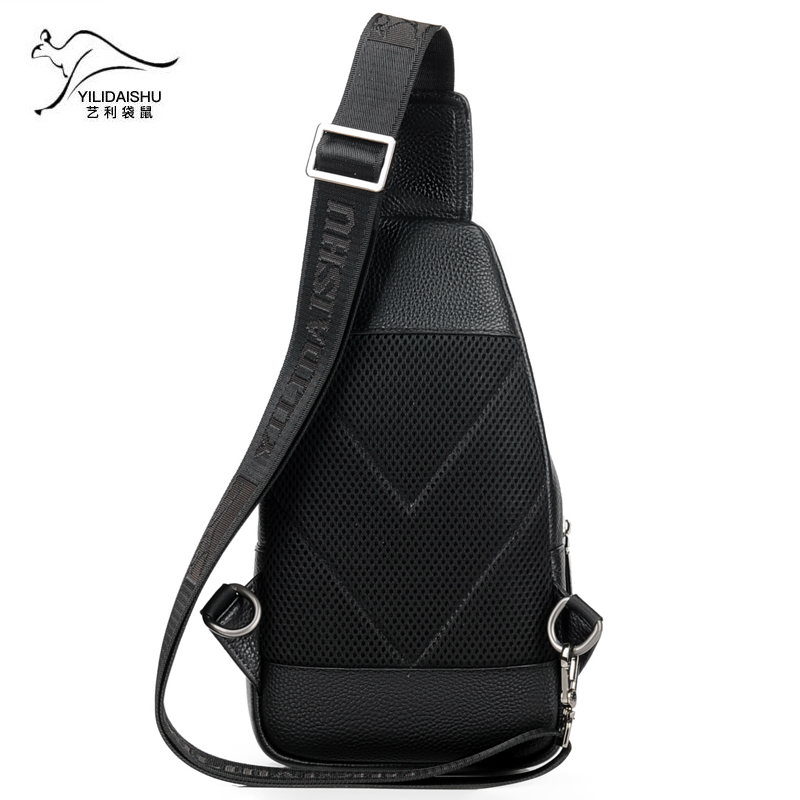 Erie kangaroo multifunctional leather cowhide chest bag men's bag shoulder messenger bag casual backpack large capacity tide