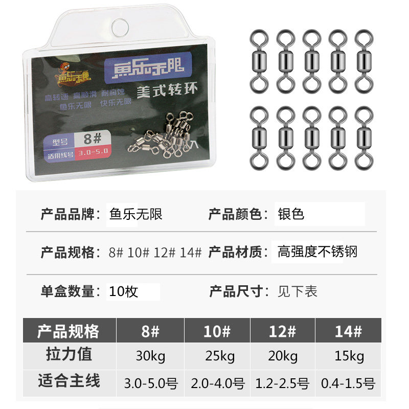 Fish Music Infinite Mirror American Swivel High Speed Eight-word Ring Pull Strong Unwound Wire Light Weight Not Easy To Wrap Around Swivel Ring