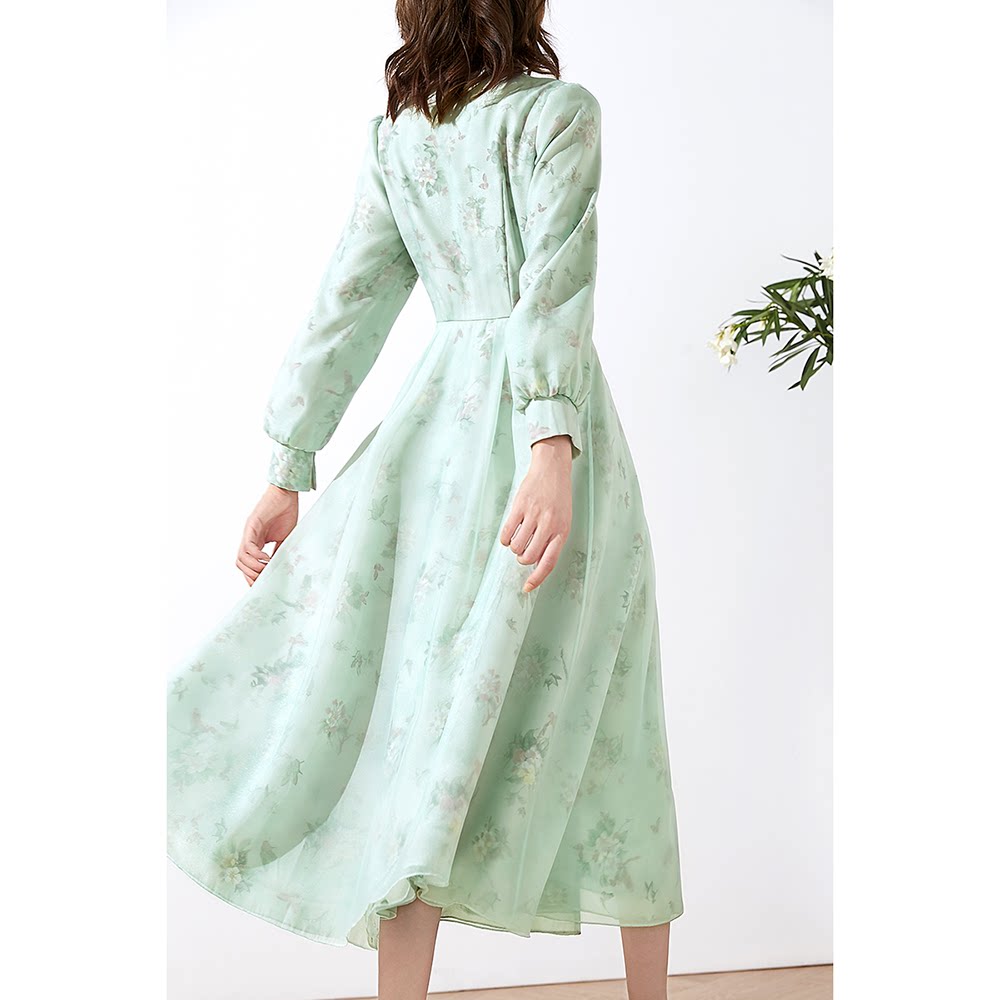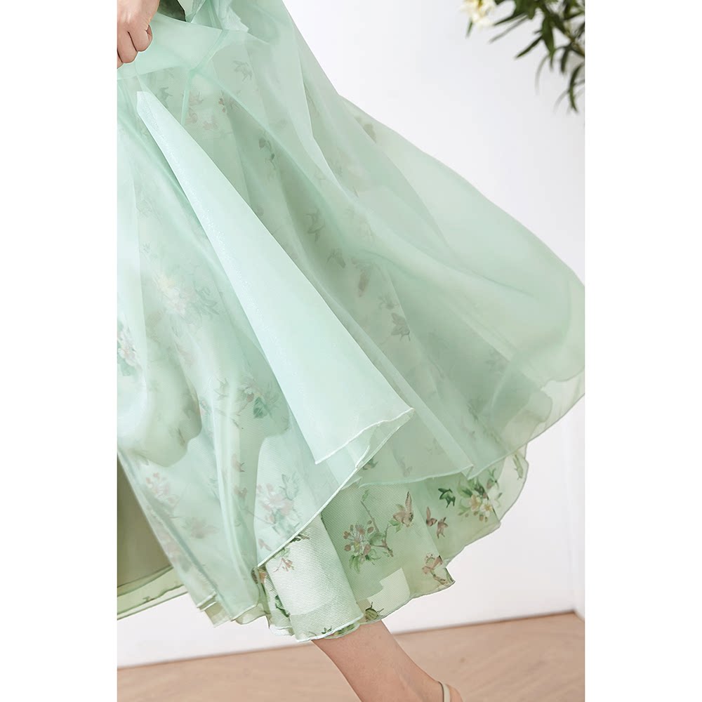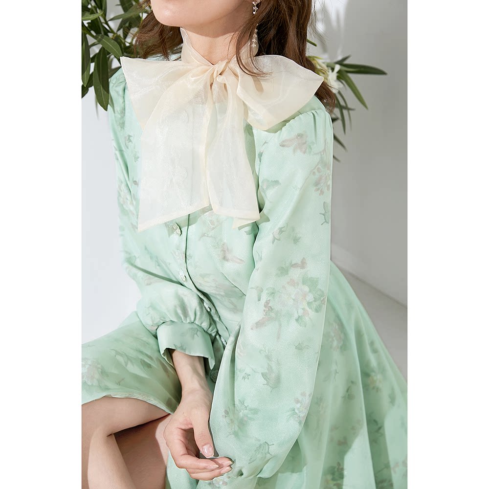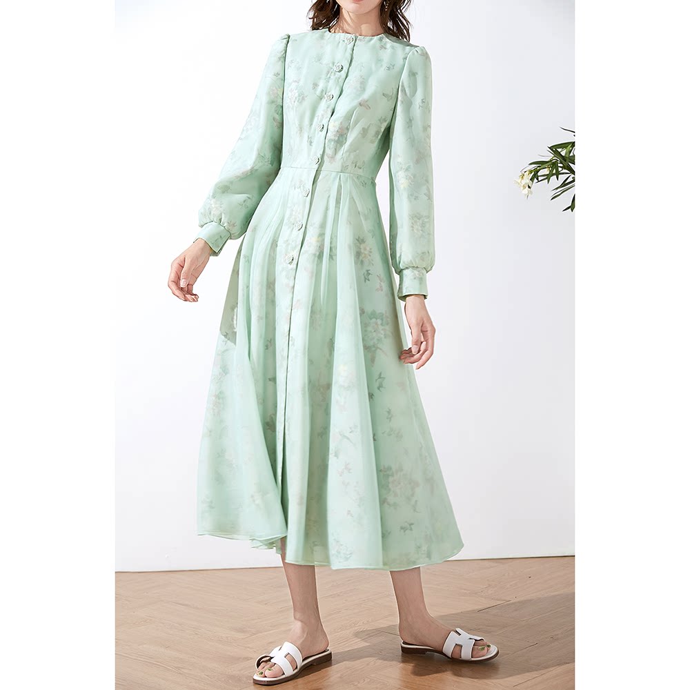 Beauty Princess Green 2022 Pop Wind Dress Woman Spring Autumn Round Collar 90% Lantern Sleeves Single Row of Colorful Long Version Coat Woman