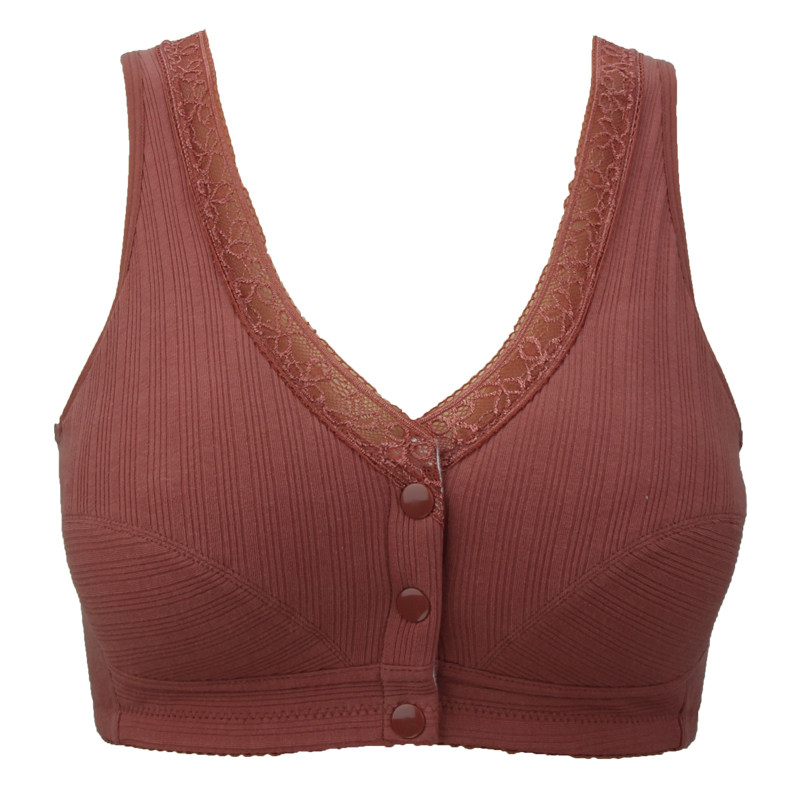 Middle-aged mother underwear bra 50-year-old no rim pure cotton vest type front buckle gathered in the elderly bra thin section