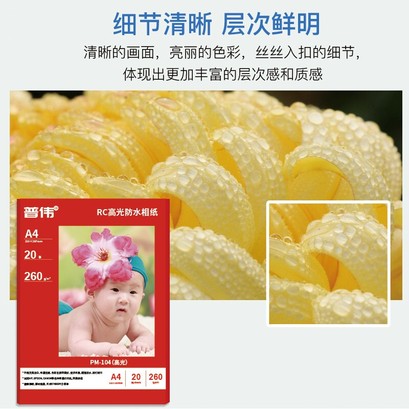 Puwei photo paper 6 inches waterproof 5 inches A6 glossy photo paper color photo paper 260g grams 3r4r photo paper a4 printing photo paper 5r 7 inches suitable for Xiaomi Mijia inkjet printer