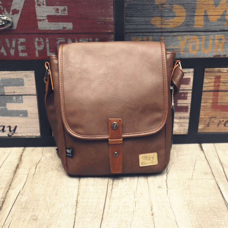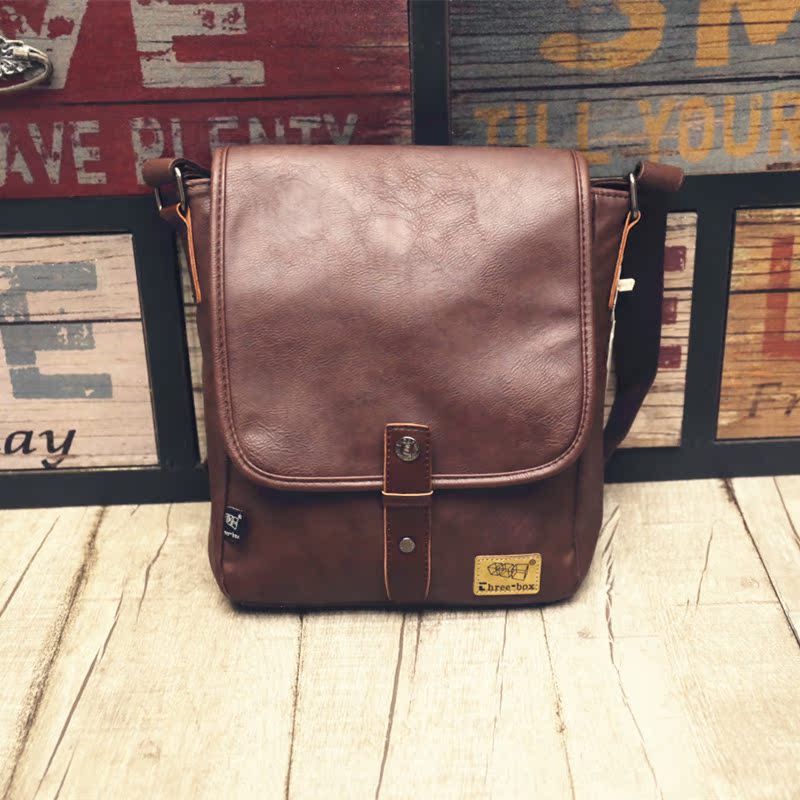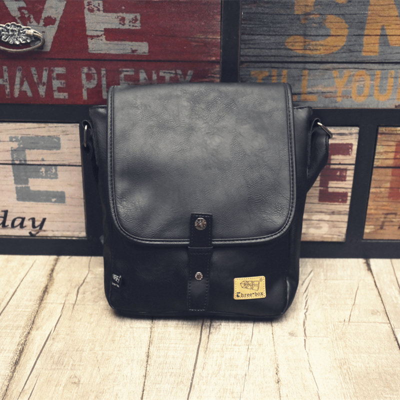 threebox Korean version of men's single shoulder bag Korean version of business street trend messenger bag mobile phone bag leather texture satchel