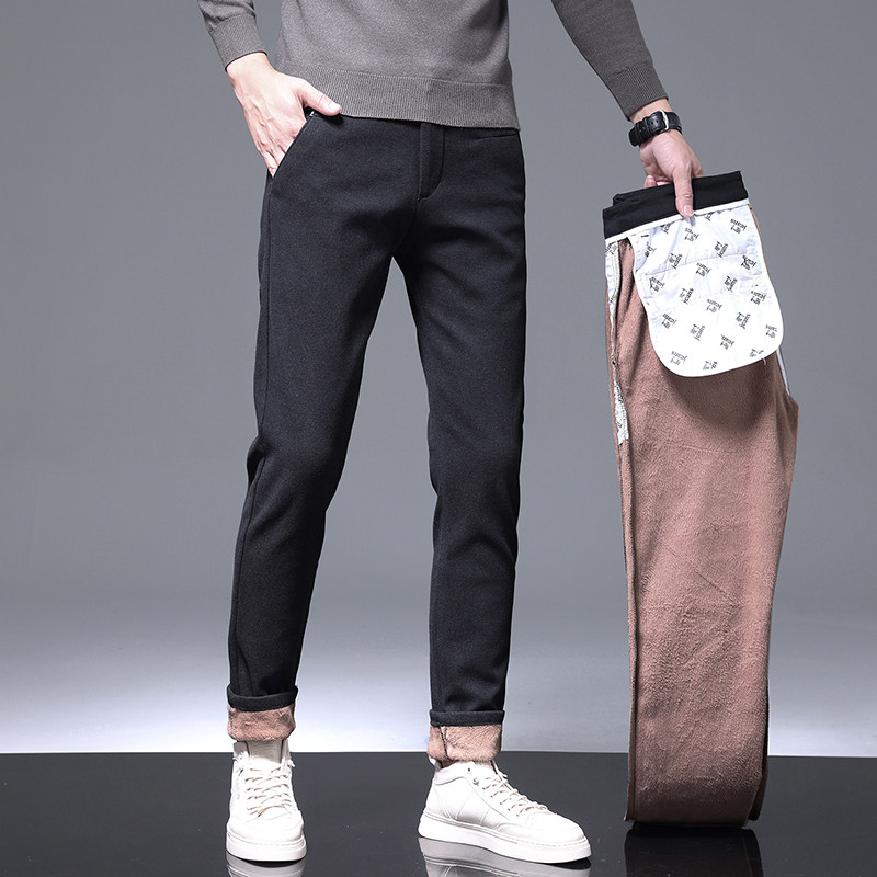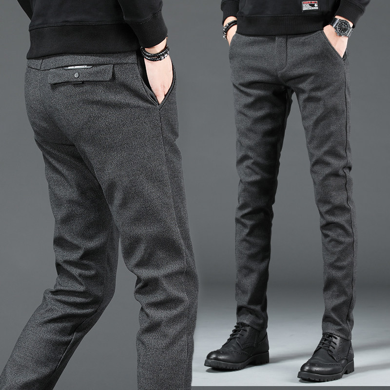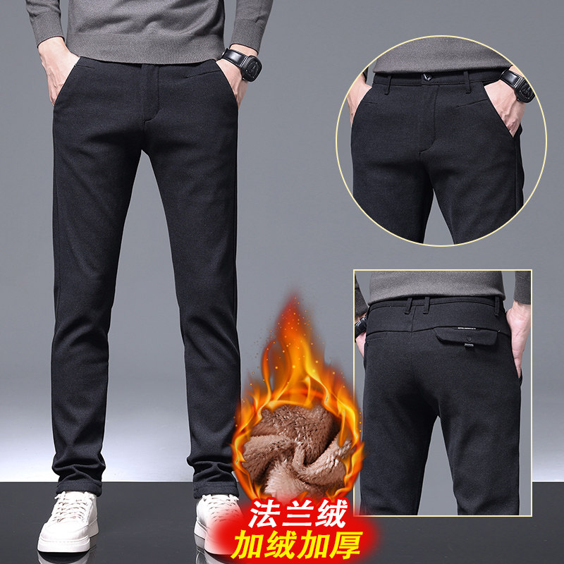 Paul elastic casual pants men's slim fit 2022 plus velvet thickened business trousers men's trousers woolen men's trousers