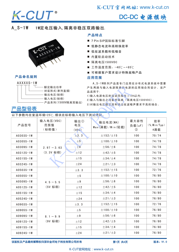 A2403S-1W (K-CUT brand) A2405S-1W (K-CUT brand) A2405S-1WR2 (with short circuit protection) A2405S