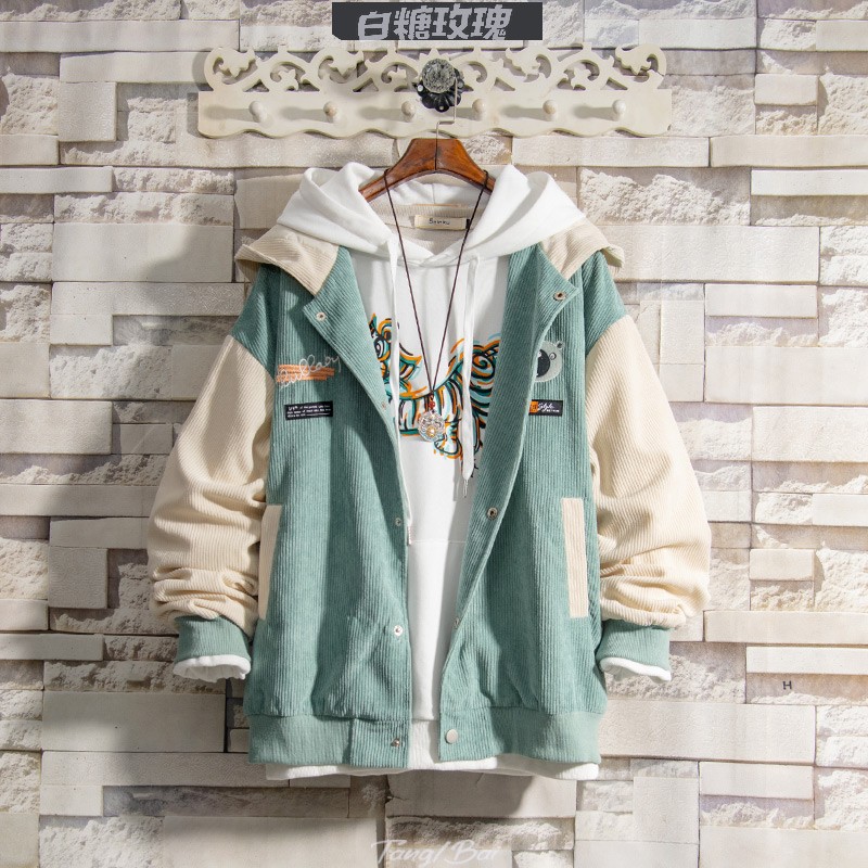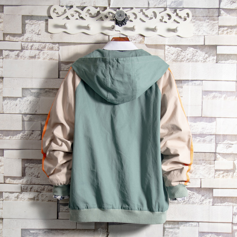 Sugar Rose 2022 Green Stitching Hooded Jacket Men's Spring and Autumn Handsome Youth Tooling Casual Jacket ins