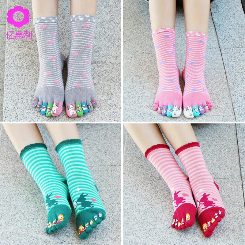 Combination set five-finger socks women's cotton summer tube in the middle of the system toe cute split toe cotton deodorant sweat-absorbing socks