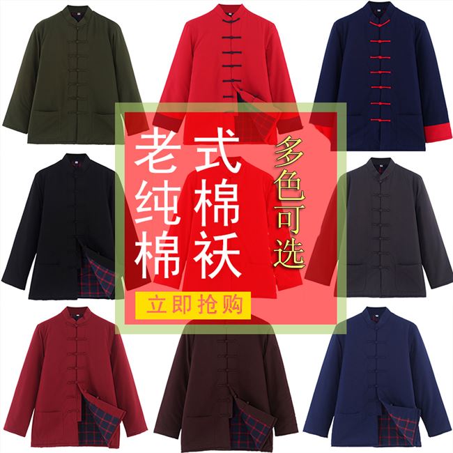 Winter Chinese style Tang dress cotton padded jacket for male Chinese wind cotton clothes jacket disc buckle retro Han clothes old age daddy winter clothes grandpa