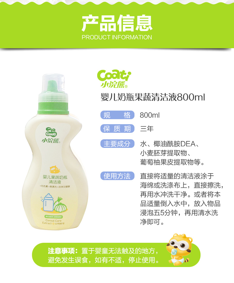 Little raccoon baby bottle cleaning liquid baby bottle cleaner liquid cleaning agent fruit and vegetable detergent 800ml