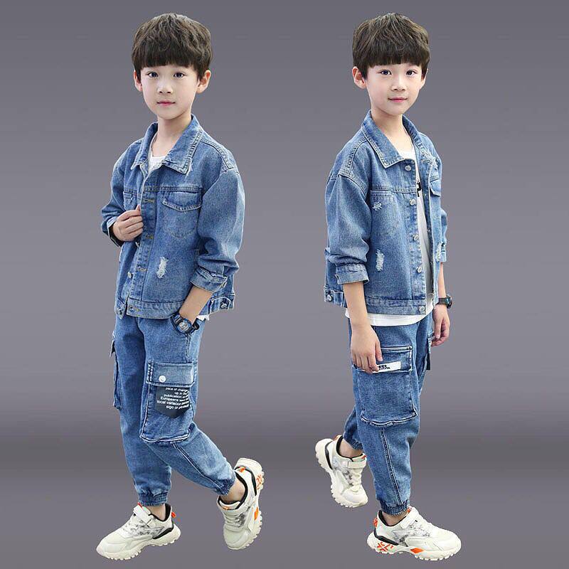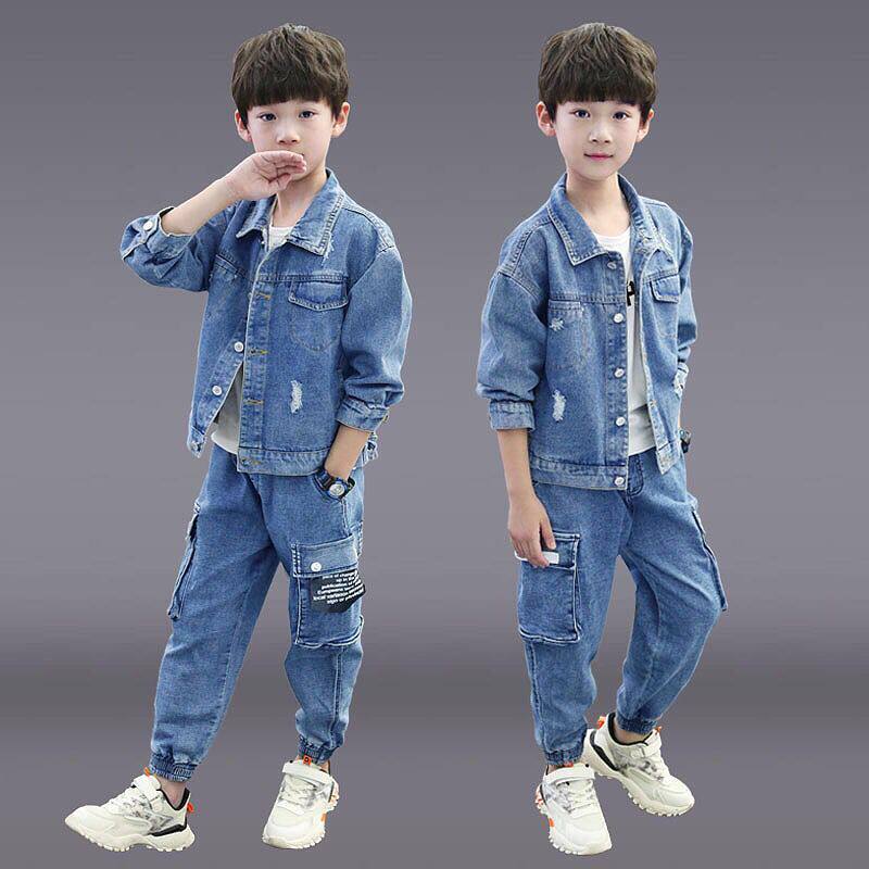 Boys spring and autumn suit 2021 new Korean version of handsome children's denim 10 two-piece set 11 Foreign school tide clothes 12 years old