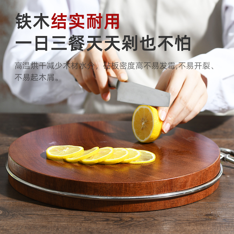 Fu Jin Cui Imported iron wood cutting board Cutting board Solid wood household cutting board Kitchen chopping board Round cutting board Whole wood pier
