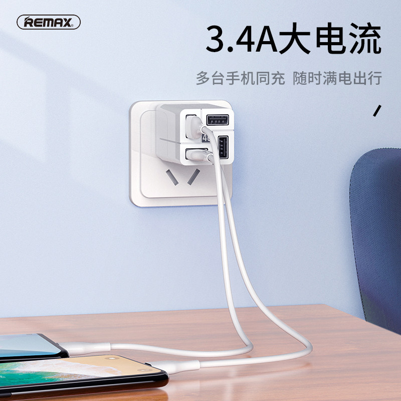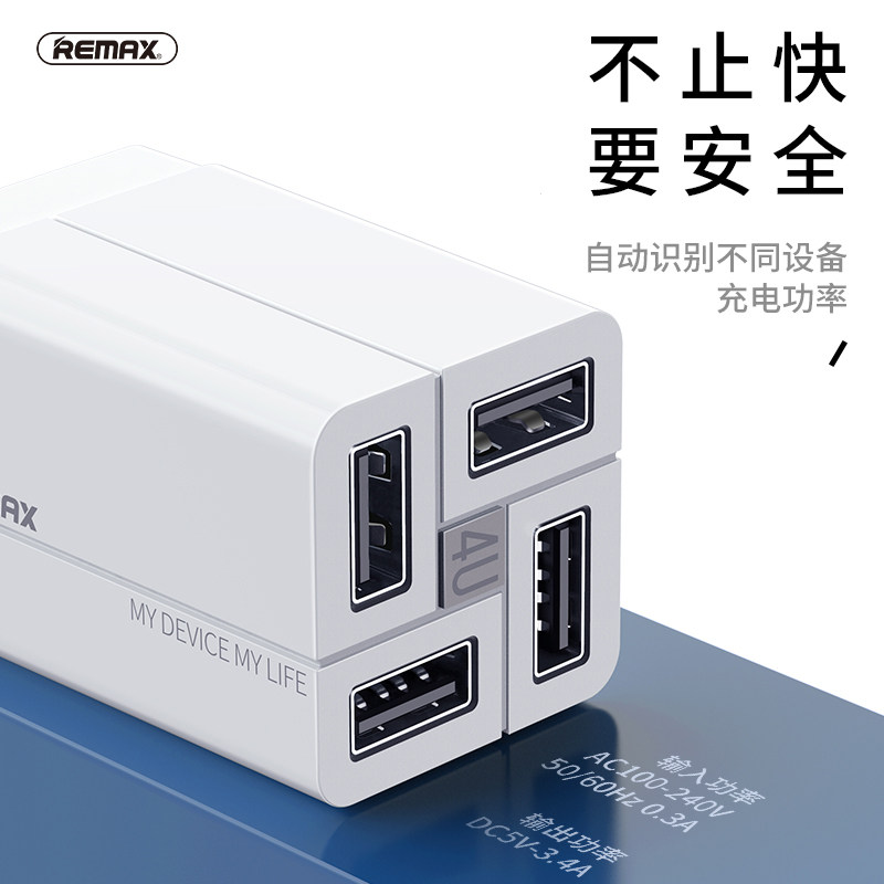 REMAX 4USB Multi-functional charging head straight charging source charger portable travel folding plug Home One tug 4 accessories Ping Fruit Android Mobile Phone Flat headphones Universal big electric flow