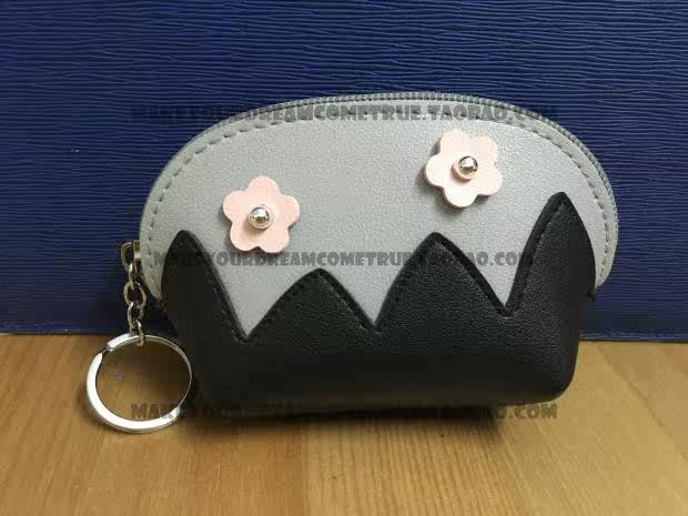 Creative Solid Splicing Small Fresh Flowers Leather Semi-circular Zero Wallet Card Bag Containing bag Key buckle hanging ornament