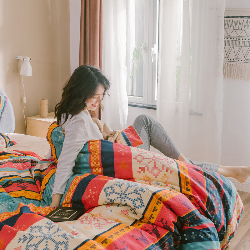 Fall New Product Brief Nordic Wind Printed Mill Wool Full Cotton Four Pieces Small Fresh Raveled Pure Cotton Bed Bedding