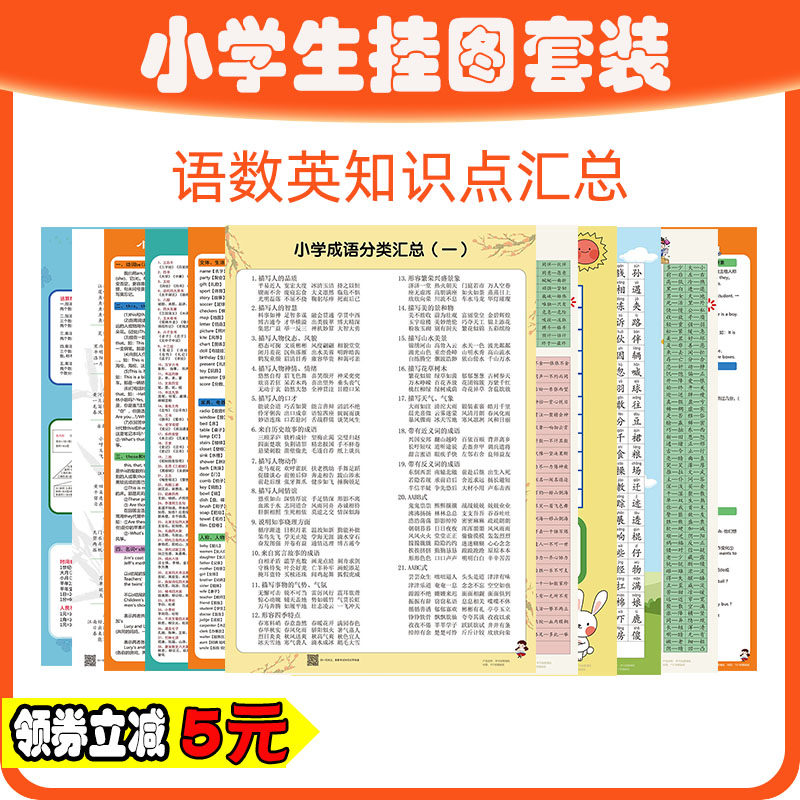 Primary school Chinese mathematics English knowledge point wall chart primary school students number learning language and mathematics outside learning wall chart set full set