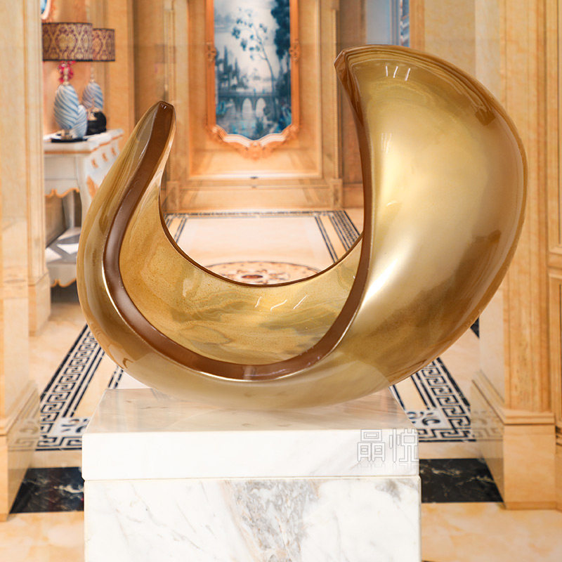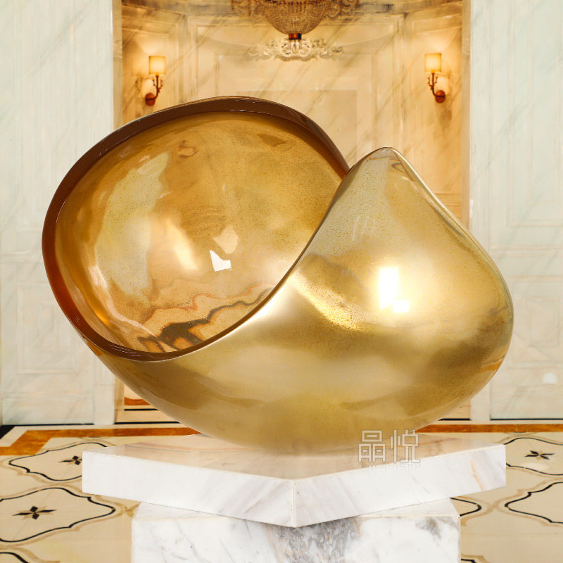 Gold Yellow Round Transparent Sculpture Synthetic Resin Pendulum Hotel Lobby Dining Room-like Dining Room Table Swing Accessories