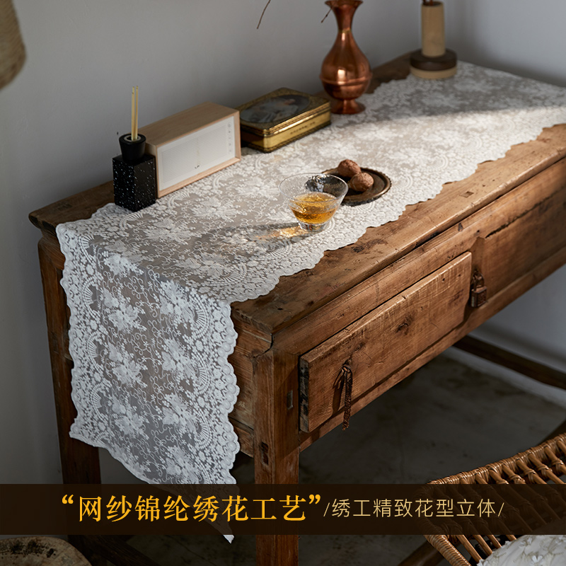 Uelove Carleton lace Table Flag Nordic minimalist mesh Yarn Embroidery Table Cloth Customised Design Tea Table strip Gaib
