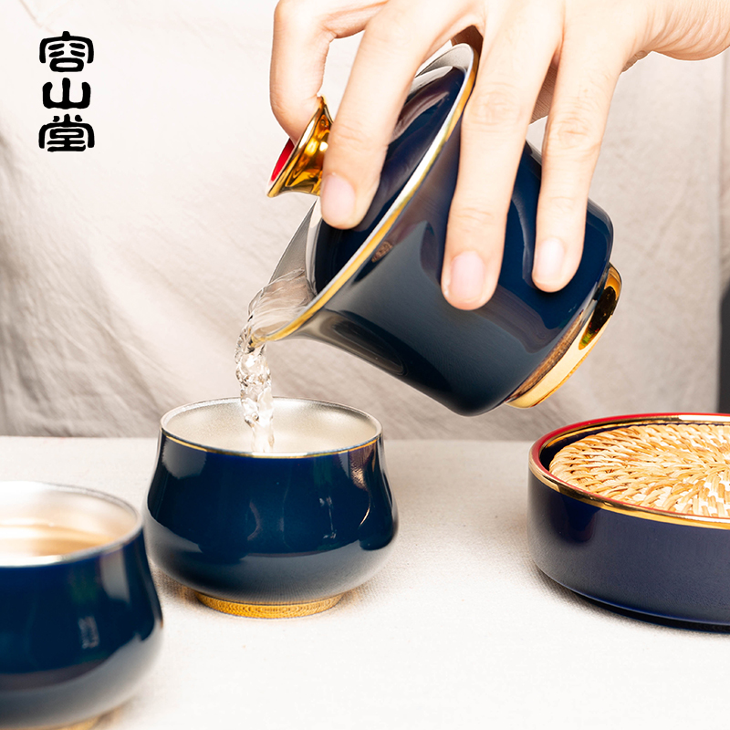 Court 1st grade Ji blue gilt silver covered bowl Court 1st grade ji blue gilt silver teacup Court 1st grade ji blue rattan pot holder Court 1st grade ji blue gilt silver covered bowl pot holder