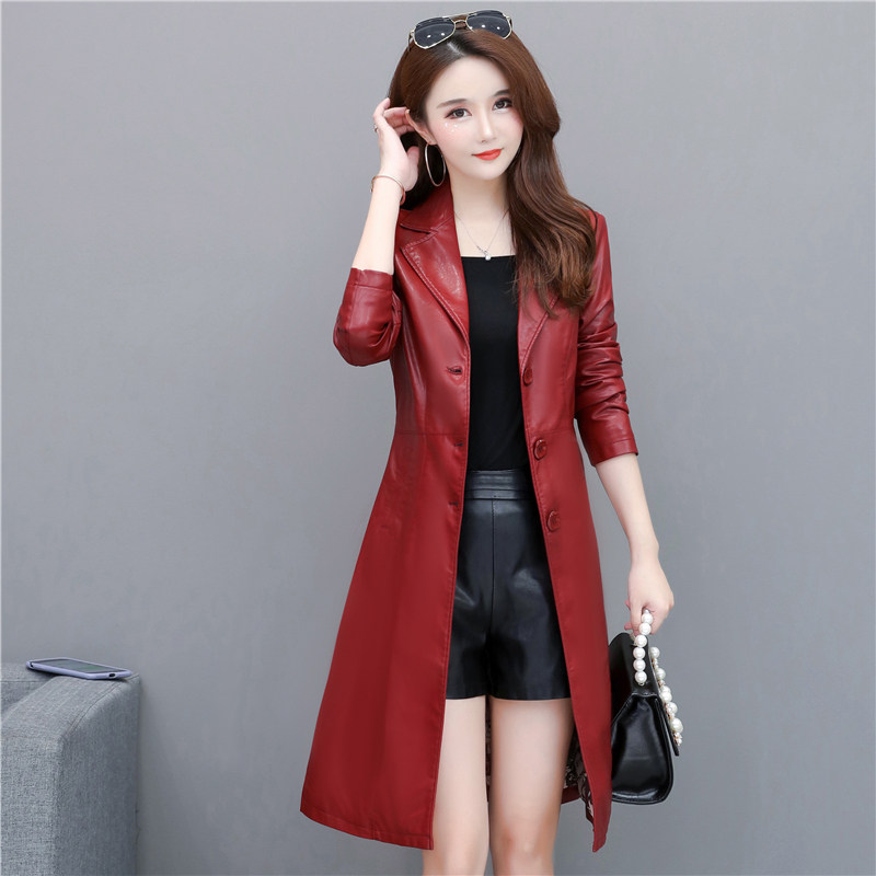 2022 Spring autumn and winter new Hainen leather clothes female Han version of the thin medium long version large size for a body leather windsuit 100 lap jacket