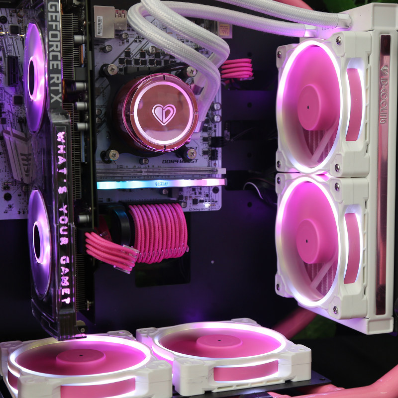 Pink Host Shell Radiators Fan 5VARGB Three-pin white 12cm Divine Light Synchronic Program Design Discoloration Temperature-controlled Fan