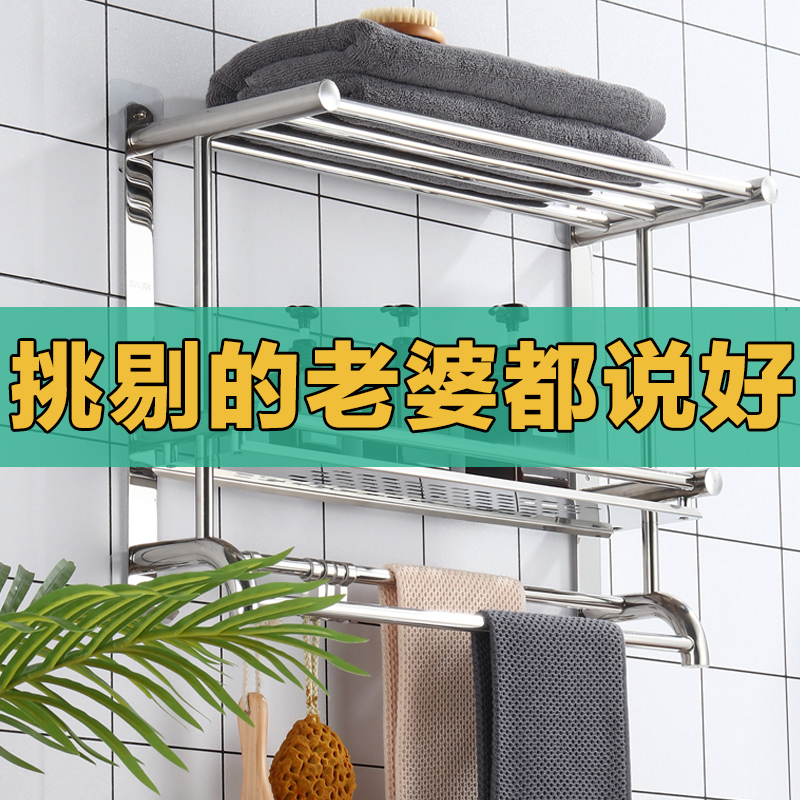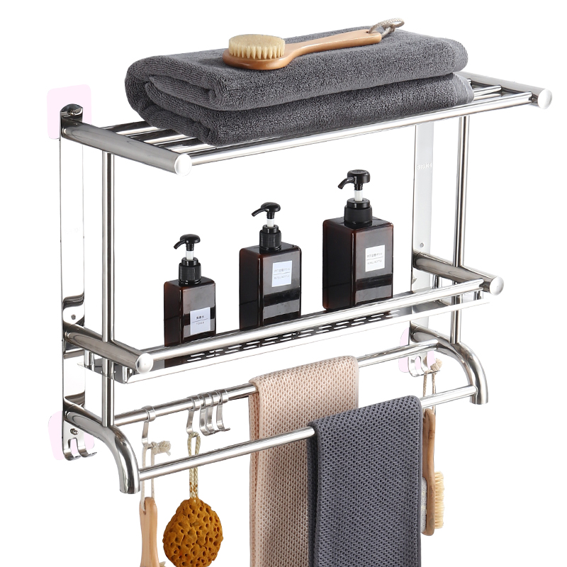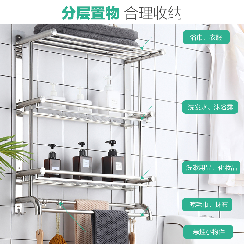 Punch-free 304 stainless steel hanging towel rack powder room storage bathroom rack wall hanging wall storage towel rack