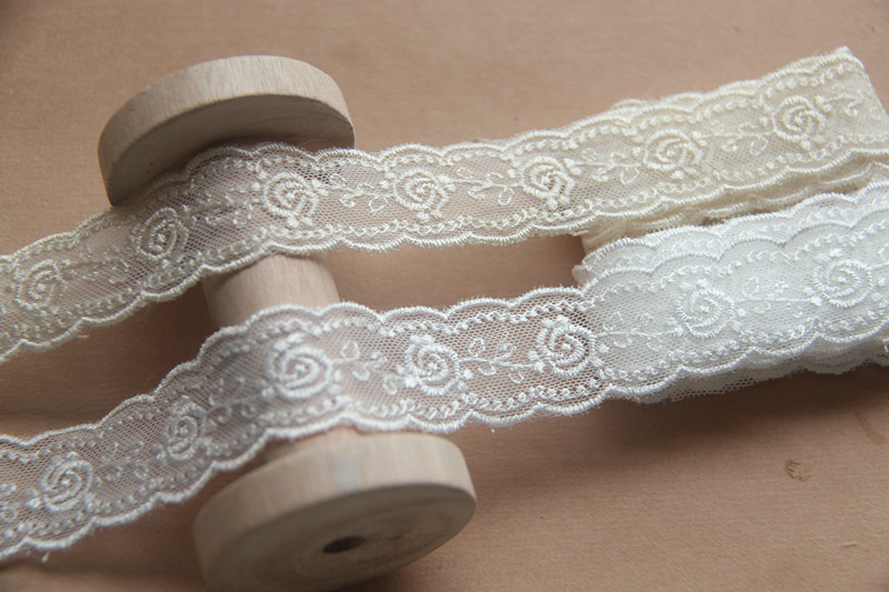F17G11 Day Edition Handmade DIY Clothing Accessories Day Edition Cotton Mesh Silk Thread Rose Embroidered Lace Width 2 5cm