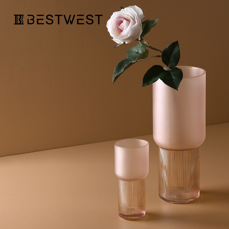 Creative Pink Glass Vase Hem Modern Minimalist Home Living Room Dining Room Table Decoration Transparent Hydroponic Flower Arrangement Bottle