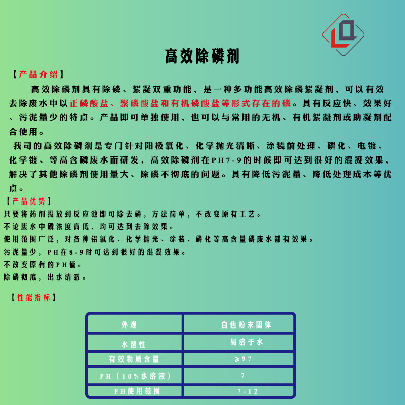 Phosphate removal agent, sewage treatment, environmental protection, zero discharge, orthophosphorus, polyphosphorus, organic phosphorus, and other professional removal of phosphates