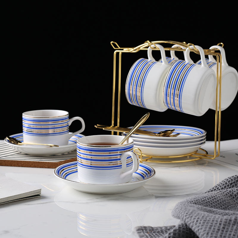 TB-new straight coffee cup blue star edge 6 cups saucers TB-new straight coffee cup hand-painted gold 6 cups saucers TB-new straight coffee cup black glaze edge 6 cups saucers TB-new straight coffee cup golden rose 6 cups