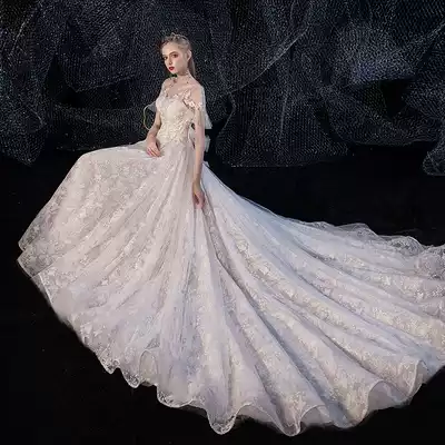 French starry sky light main wedding dress 2021 new temperament bride court princess trailing simple little man out of the yarn