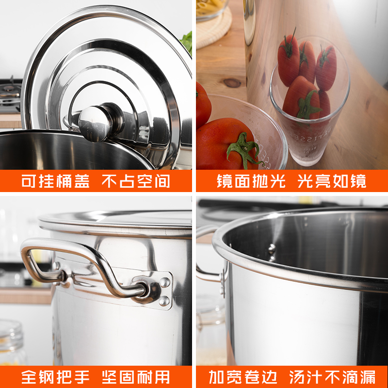 304 stainless steel drum Commercial soup pot with lid Large capacity water storage bucket Large soup pot High pot round bucket Oil bucket Brine bucket