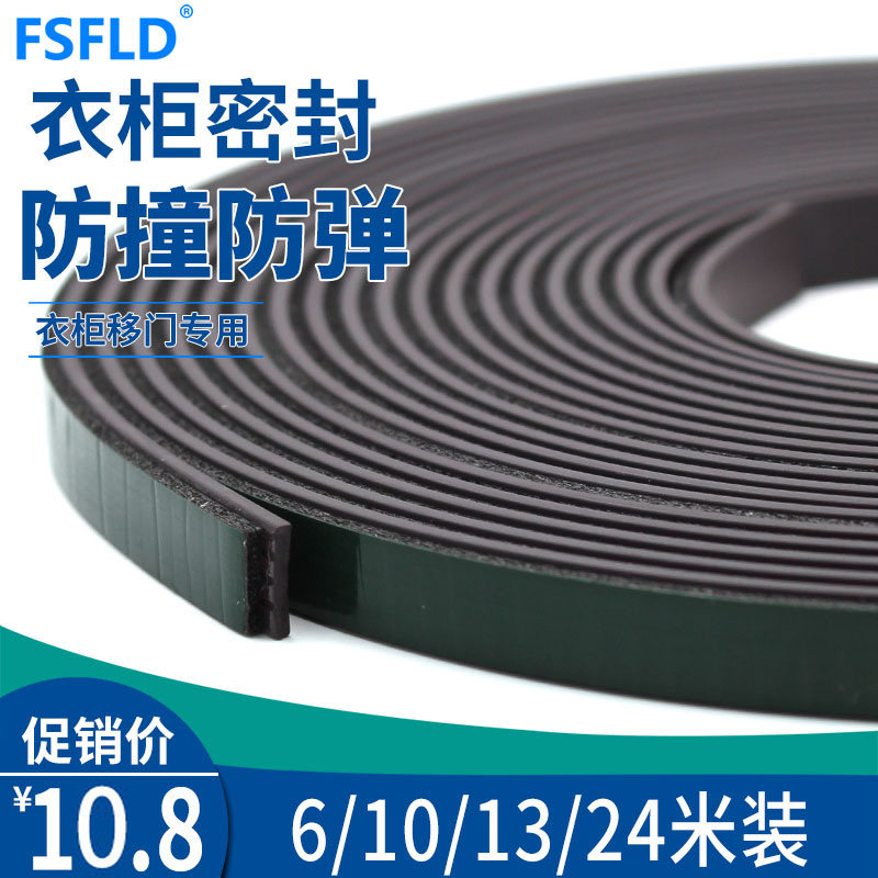 Self-adhesive wardrobe door magnetic strip card slot magnetic strip interspersed anti-collision seal strip translation door back glue soft magnetic sliding door