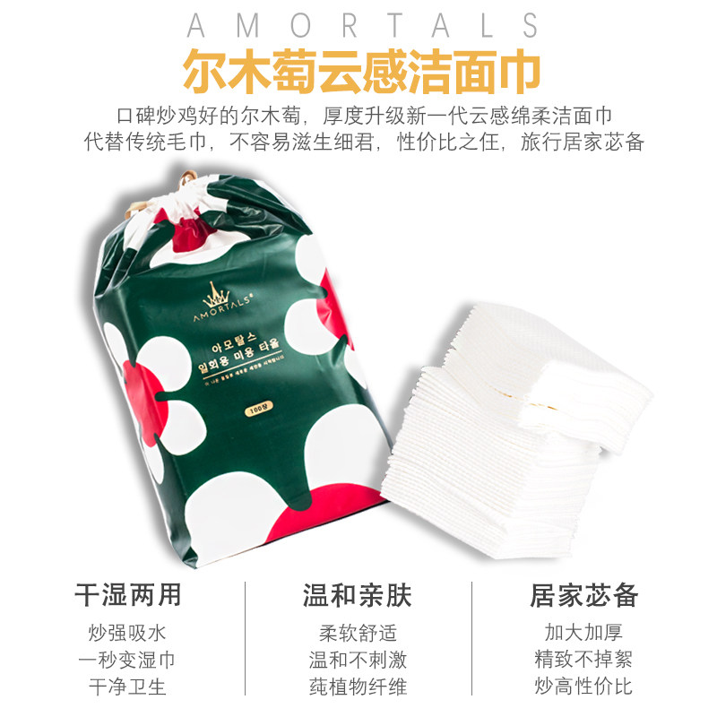 Korea AMORTALS Erm grape cloud feeling cotton soft cleansing towel skin-friendly does not fall off the flocculation disposable face towel pure cotton
