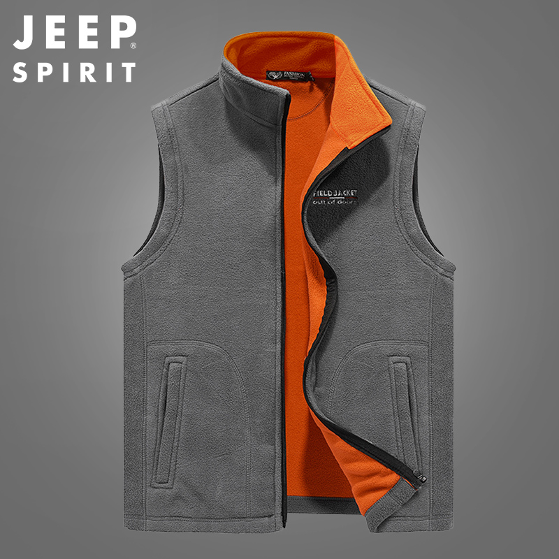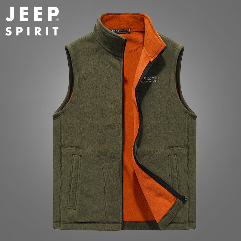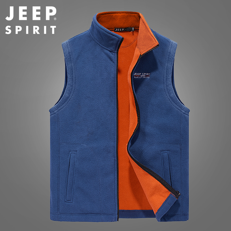 JEEP jeep men's fleece vest spring and autumn sports and leisure base warm fleece men's cotton vest