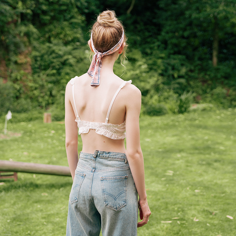 Sixth floor French underwear girl no rim thin summer big chest show small triangle cup student bra bra set