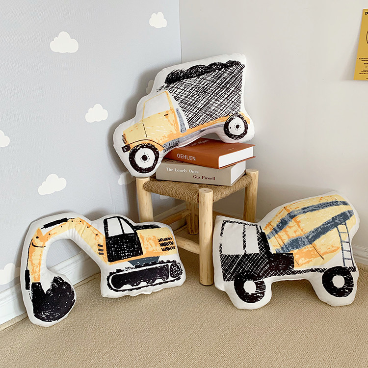 Detachable and washable excavator toy pillow engineering car alpaca method bucket short plush pillow children's baby bedside accessories