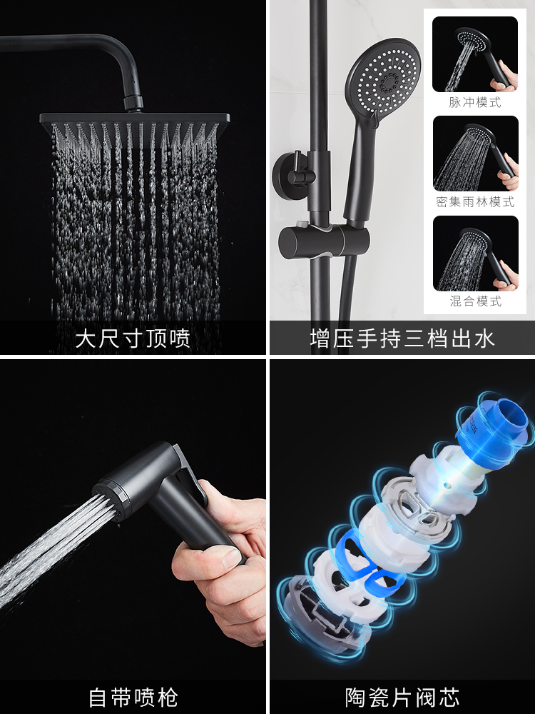 Old Coppersmith shower set Household shower constant temperature all copper faucet shower head Black shower set