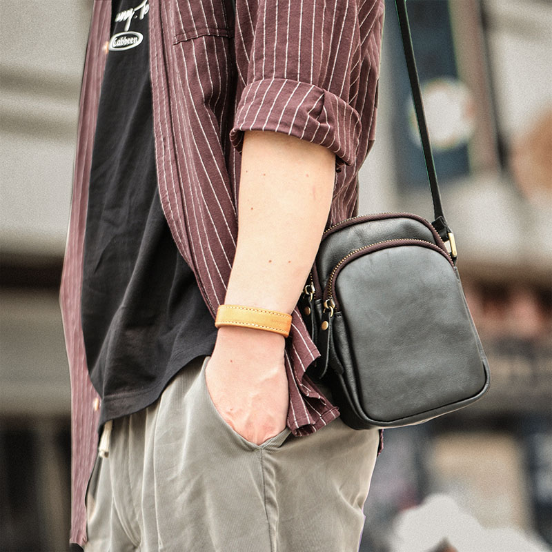 Day Department men's genuine leather single shoulder inclined shoulder bag Summer men's and women's damp bag Chauded mini bullskin Casual Slant and Shoulder Bag Vertical