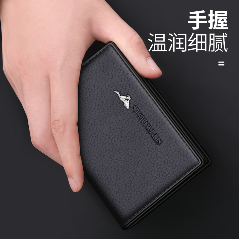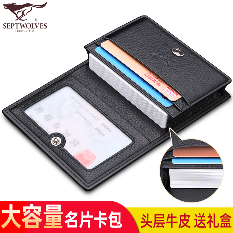 Septwolves business card holder men's business leather small card holder card holder multi-card slot large-capacity document holder card holder card holder