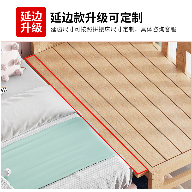 Solid wood children's bed boy single bed girl princess bed widened bedside bed baby cot baby stitching big bed