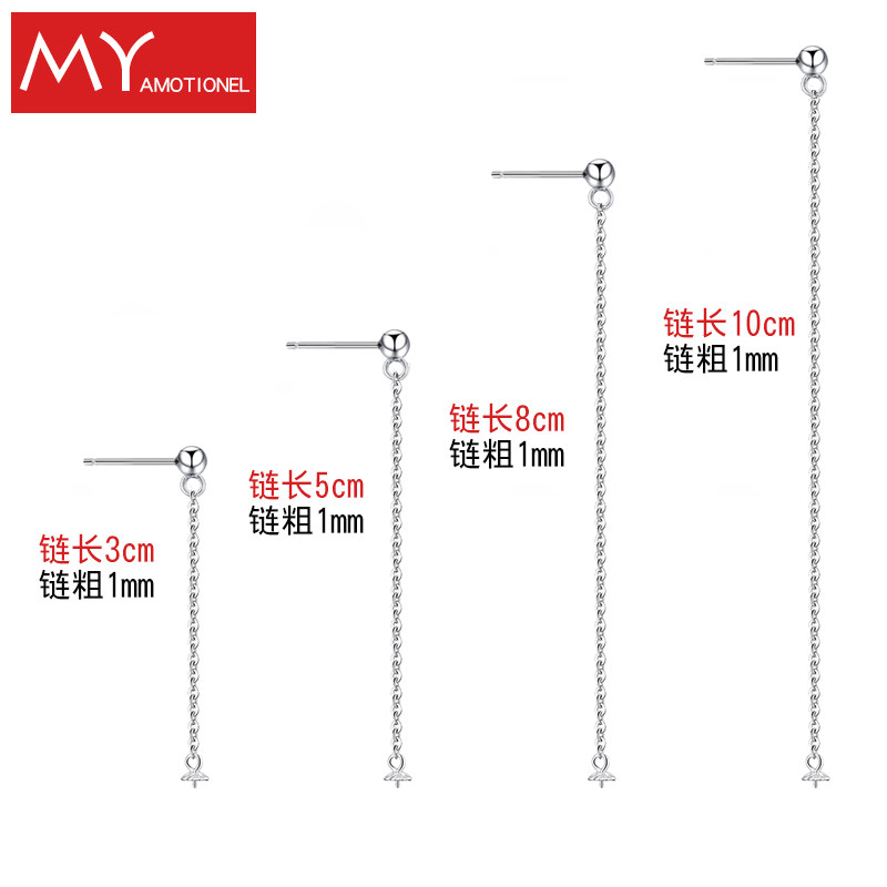 ()925 sterling silver ear pin chain pearl holder diy earrings earrings accessories handmade earrings material bag