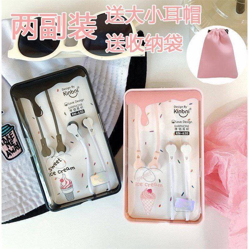 <Two sets>Girl Heart Headphones for Oppo Huawei vivo Apple In-Ear Headphones Cable Cute