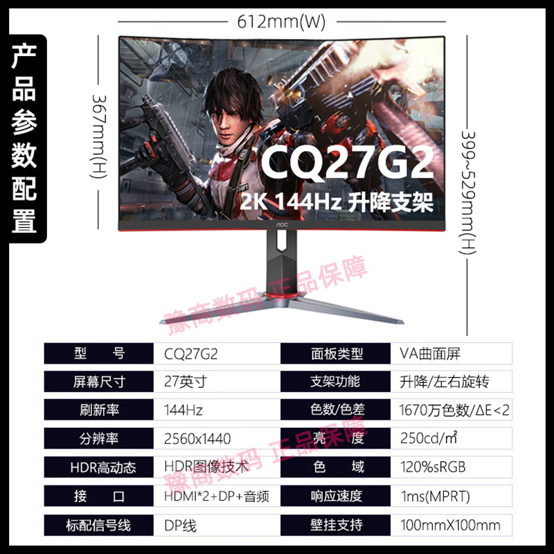 AOC CQ27G2 27-inch 144Hz electric race 2K ultra clear liquid crystal computer screen 1MS responsive curved screen